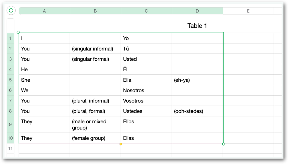 Copy the two or four columns in the spreadsheet to the clipboard.