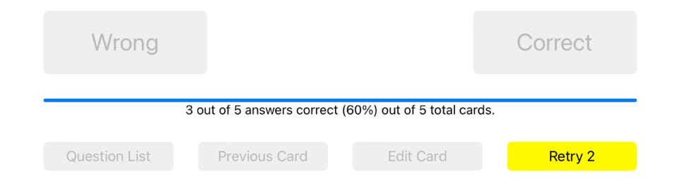 After all questions have been answered, and if one or more questions were answered incorrectly, the "Retry" button displays in yellow with the number of incorrect guesses: